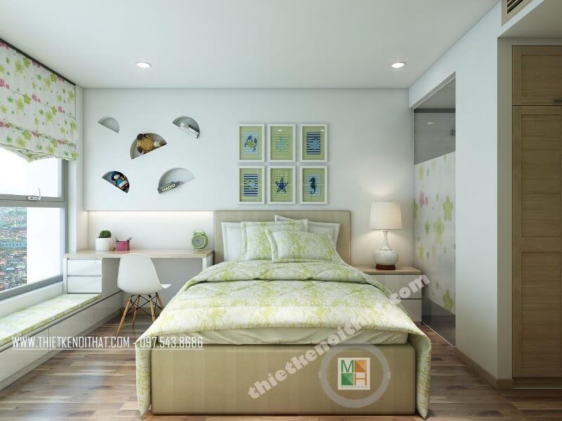Mẫu giường ngủ gỗ nhỏ gọn phù hợp với không gian phòng ngủ cho bé diện tích vừa và nhỏ.