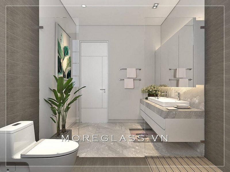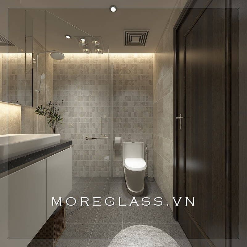Thiết kế phòng tắm chung cư hiện đại, thoáng rộng khi kết hợp với các vật liệu như gạch và kính