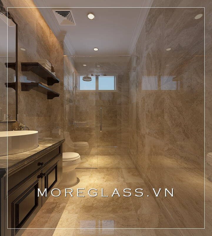 Mẫu thiết kế phòng tắm đẹp với phòng tắm kính cường lực trong suốt mang vẻ đẹp sang trọng, tinh tế.