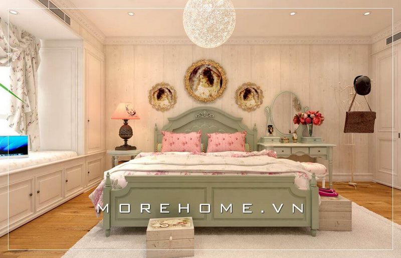 Mẫu thiết kế giường ngủ con gái tại biệt thự cao cấp phong cách tân cổ điển
