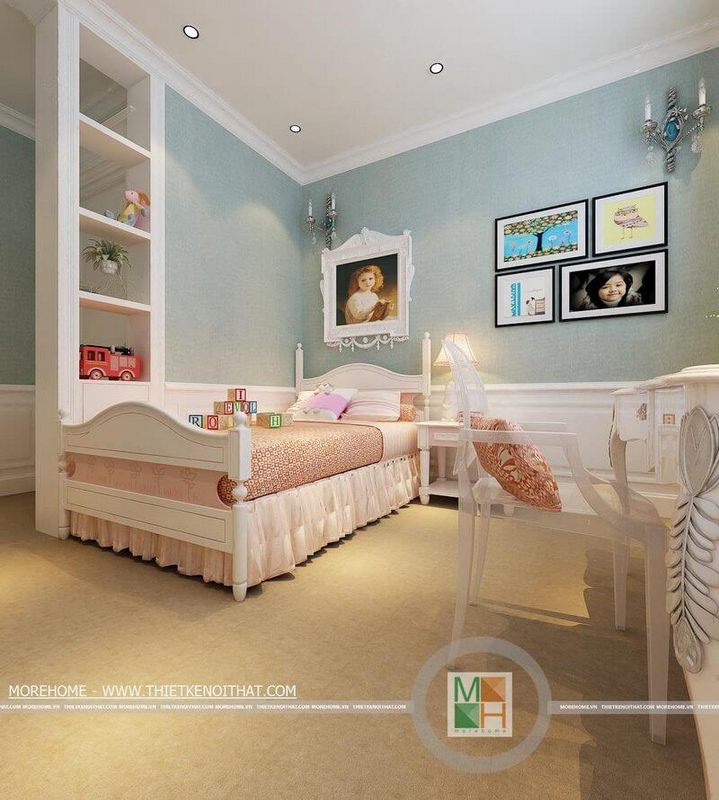 Thiết kế giường ngủ đẹp cho phòng ngủ của bé trong không gian biệt thự cao cấp phong cách tân cổ điển sang trọng, ấn tượng