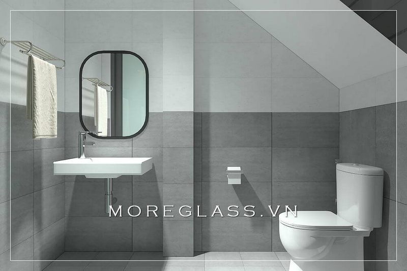 Mẫu gương phòng tắm đơn giản không bo viền ốp tường tạo cảm giác cho căn phòng rộng rãi hơn.