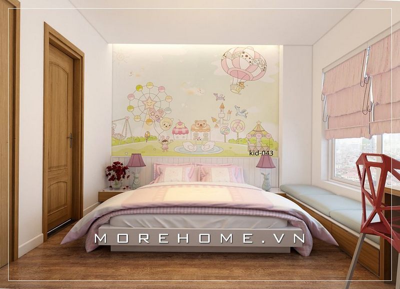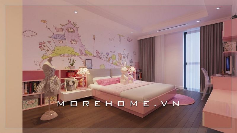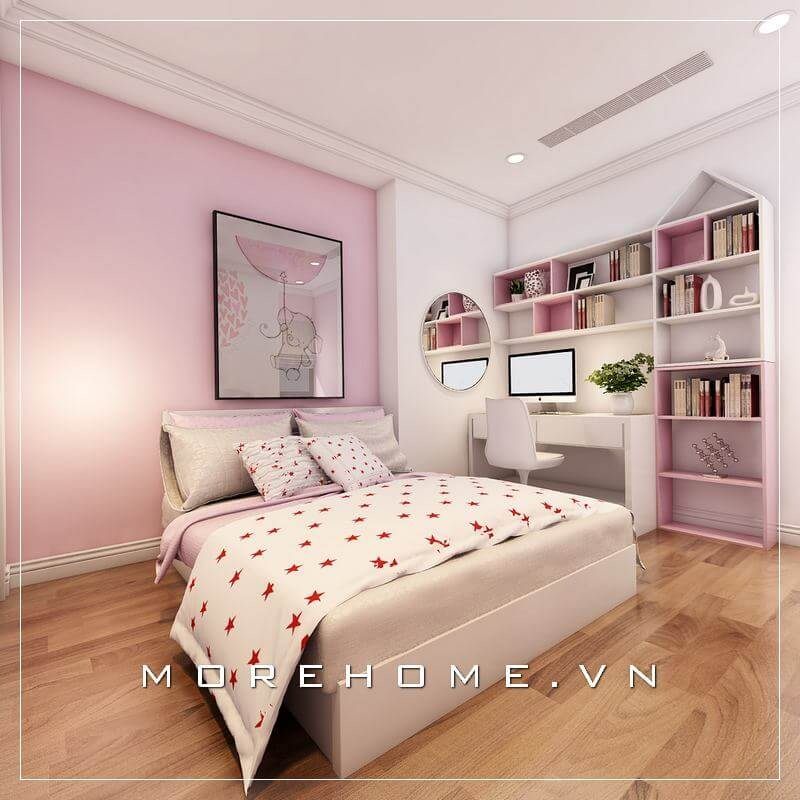 Phòng ngủ màu hồng đẹp được thiết kế bởi Morehome