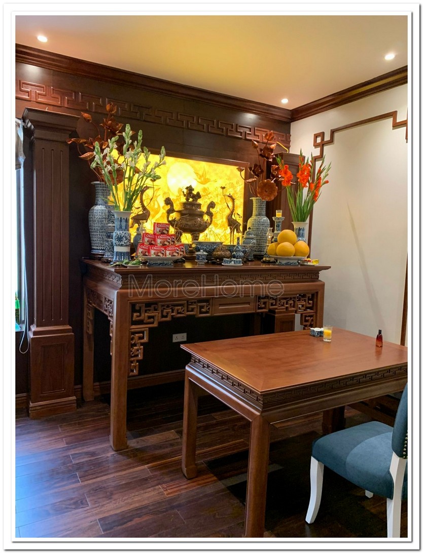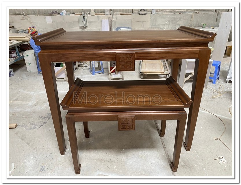 Ảnh bàn thờ được sản xuất tại xưởng MoreHome. Chất liệu gỗ tự nhiên Tần bì
