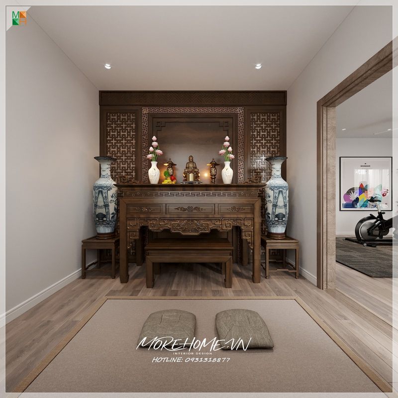 Mẫu bàn thờ gỗ tự nhiên được sản xuất tại Morehome các thợ lâu năm có kính nghiệm dựa vào 2 yếu tố truyền thống và phong thủy thể hiện sự biết ơn, thành kính sâu sắc tới thế hệ đi trước