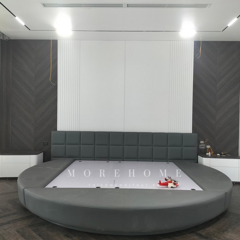 Giường tròn bọc da, màu sắc cá tính bật lên phong cách cá tính của gia chủ.