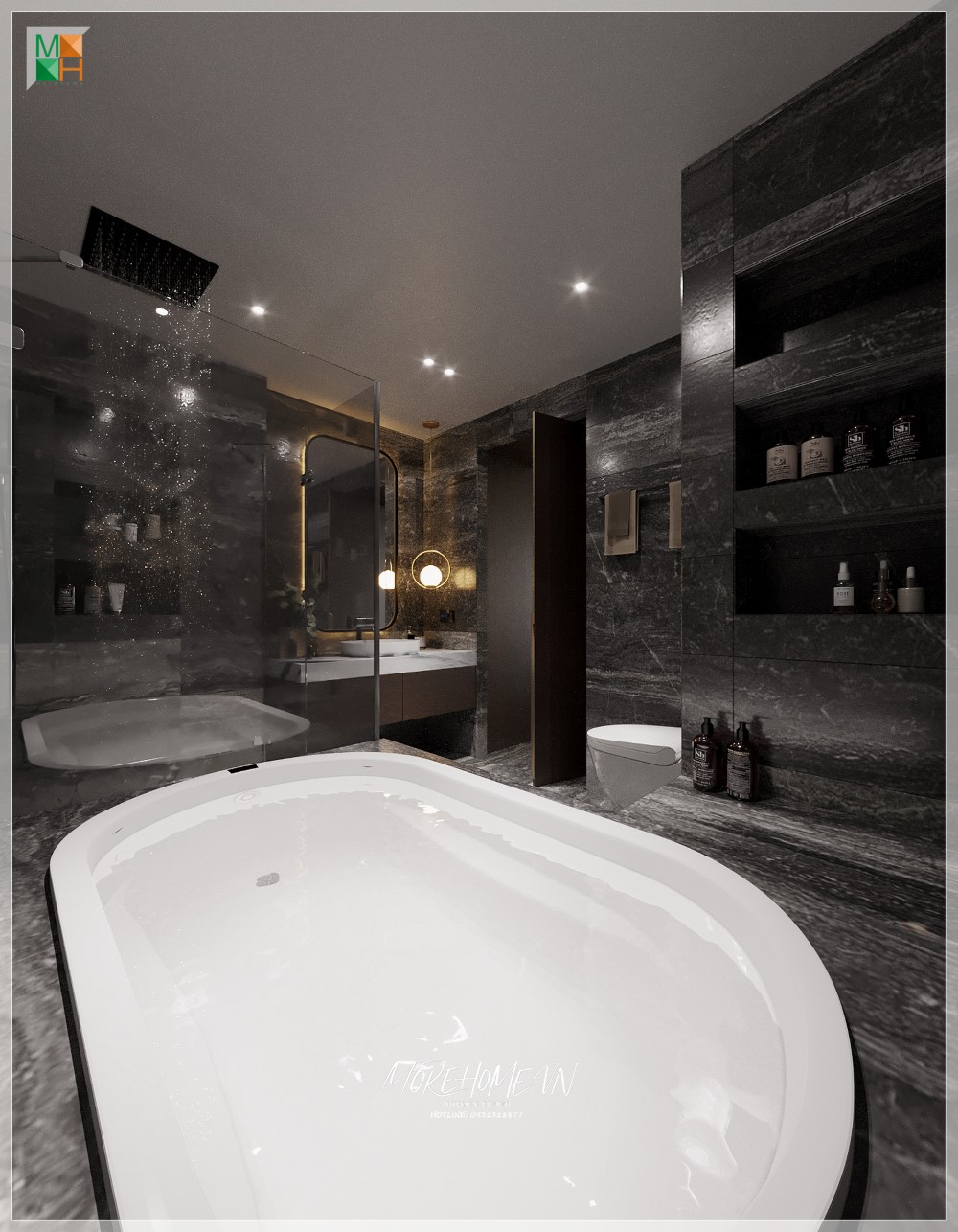 Không gian phòng tắm nên được thiết kế để tận dụng tối đa ánh sáng tự nhiên. Cửa sổ lớn hoặc cửa kính trong suốt có thể giúp ánh sáng tự nhiên lan tỏa khắp phòng, tạo cảm giác tươi sáng và tinh tế. Hãy cân nhắc sử dụng đèn chiếu sáng mềm mại để tạo ra không gian ấm áp vào buổi tối.