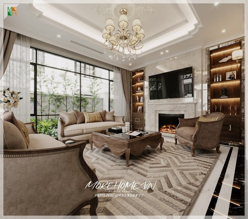 Một không gian phòng khách được thiết kế ấn tượng với phong cách tân cổ điển