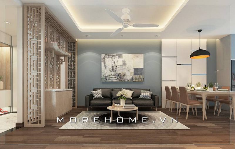 Mẫu thiết kế bàn thờ chung cư cao cấp kết hợp vách cnc gỗ màu tự nhiên tạo giúp tách biệt không gian,tạo vẻ đẹp sang trọng