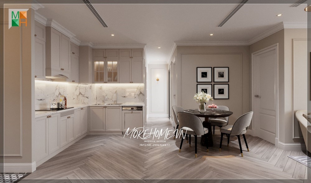 2. Xác định phong cách của bạn: Xác định sở thích cá nhân của bạn - đương đại, truyền thống, mộc mạc hay tối giản - vì điều này sẽ hướng dẫn bạn chọn tủ phù hợp với sở thích của mình. Mời bạn tham khảo 1 số căn bếp MoreHome thiết kế và thi công theo phong cách hiện đại và phong cách tân cổ điển nhé.
