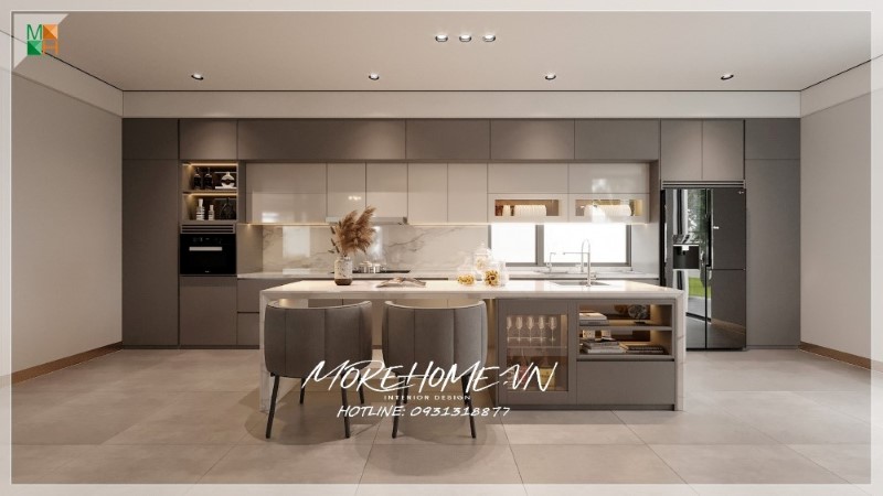 Phòng bếp được bố trí hài hòa mang phong cách thiết kế hiện đại