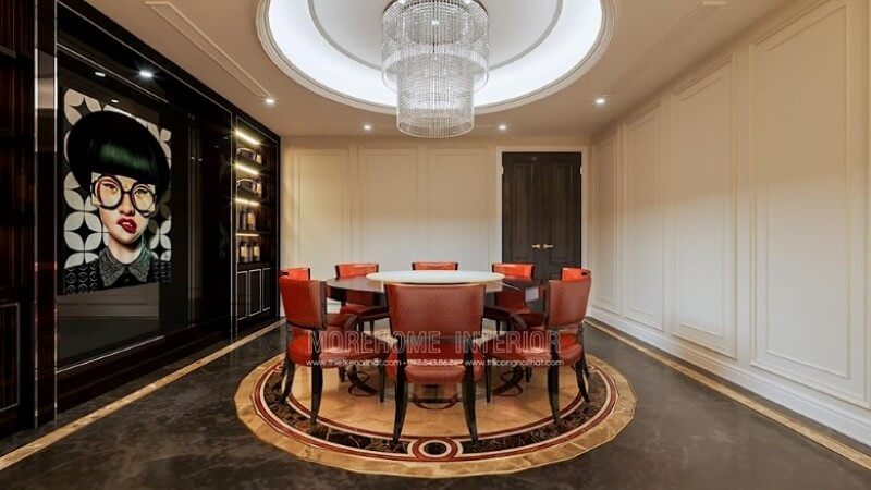 Một bức tranh lớn hay một tác phẩm điêu khắc độc đáo có thể trở thành tâm điểm của không gian, thu hút ánh nhìn và tạo ra những câu chuyện thú vị cho khách tham quan. Hãy cân nhắc việc kết hợp các chất liệu cao cấp như gỗ tự nhiên, đá marble và kim loại sáng bóng để làm nổi bật sự sang trọng của từng món đồ nội thất.
