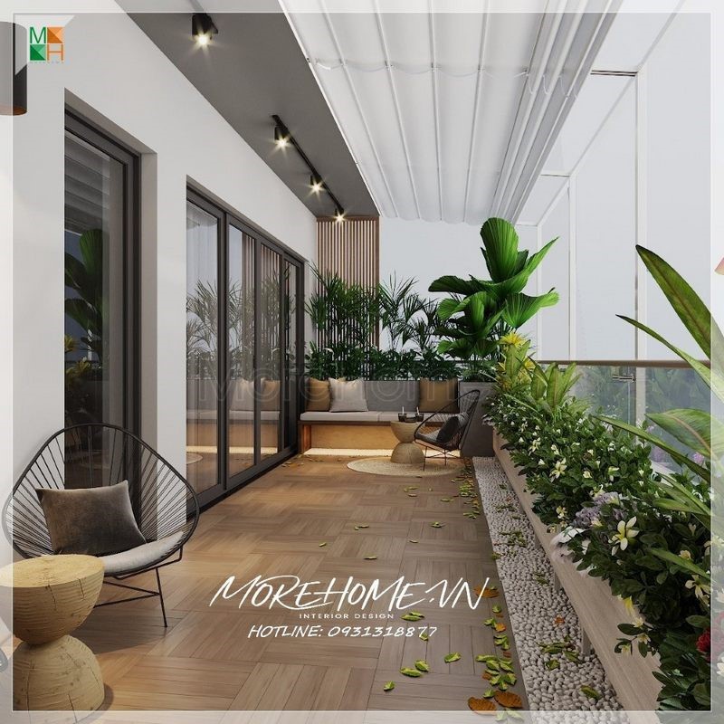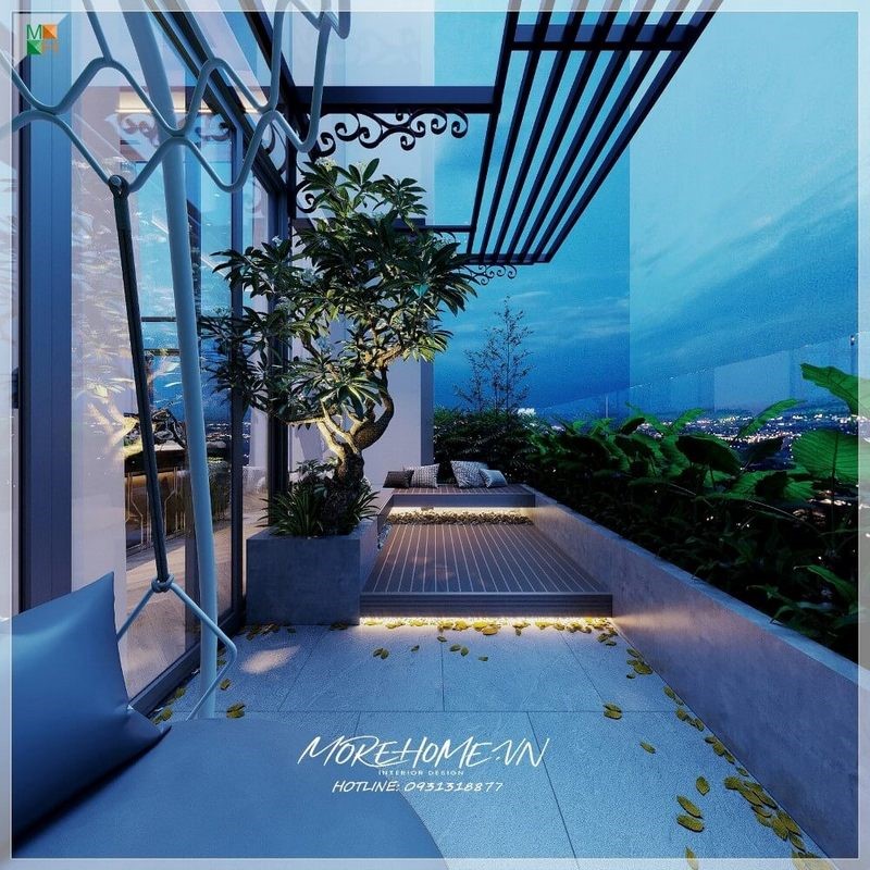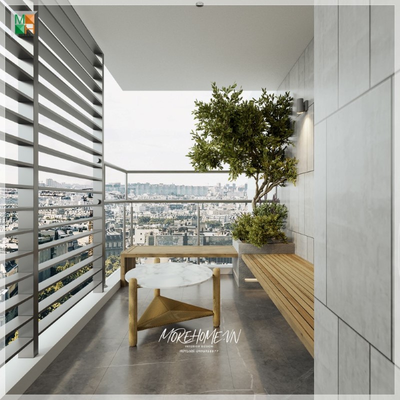 Cây xanh: Bố trí cây xanh phù hợp với điều kiện ánh sáng và không gian của ban công, giúp tăng thêm vẻ đẹp tự nhiên và sức sống cho không gian.