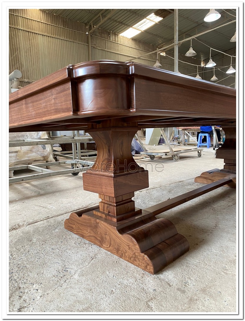 Loại gỗ cũng nên được tính đến – các lựa chọn phổ biến bao gồm gỗ sồi, gỗ gụ và gỗ óc chó. Mỗi tùy chọn gỗ mang lại những đặc điểm và độ bền riêng. Ngoài ra, hãy xem xét lớp hoàn thiện của bàn vì nó có thể ảnh hưởng lớn đến vẻ ngoài và tuổi thọ của nó.