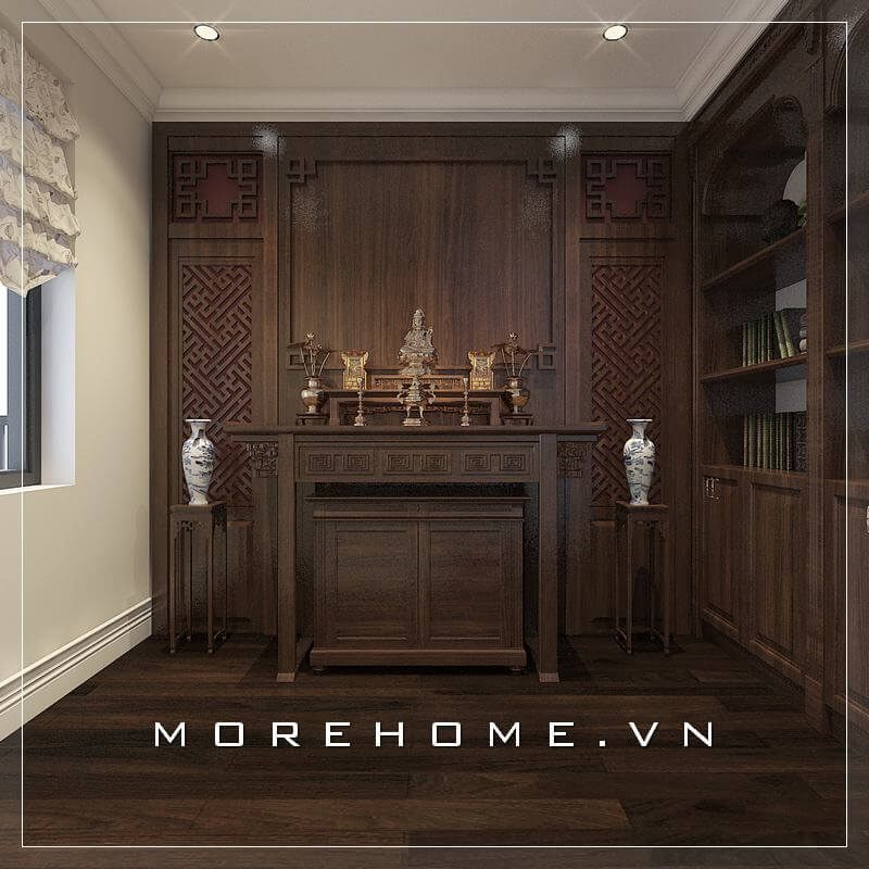 Mẫu bàn thờ gỗ tự nhiên cao cấp cho phòng thờ chung cư được yêu thích tại MoreHome