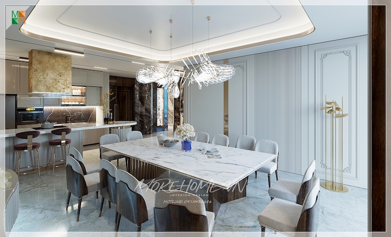 Bàn ăn mặt đá nhân tạo đẹp và sang trọng
